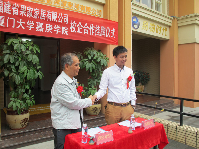 11月12日上午,厦门大学嘉庚学院国际经贸系与福建省果家家居有限公司合作共建教学实基地签约揭牌仪式在福建省果家家居有限公司隆重举行。