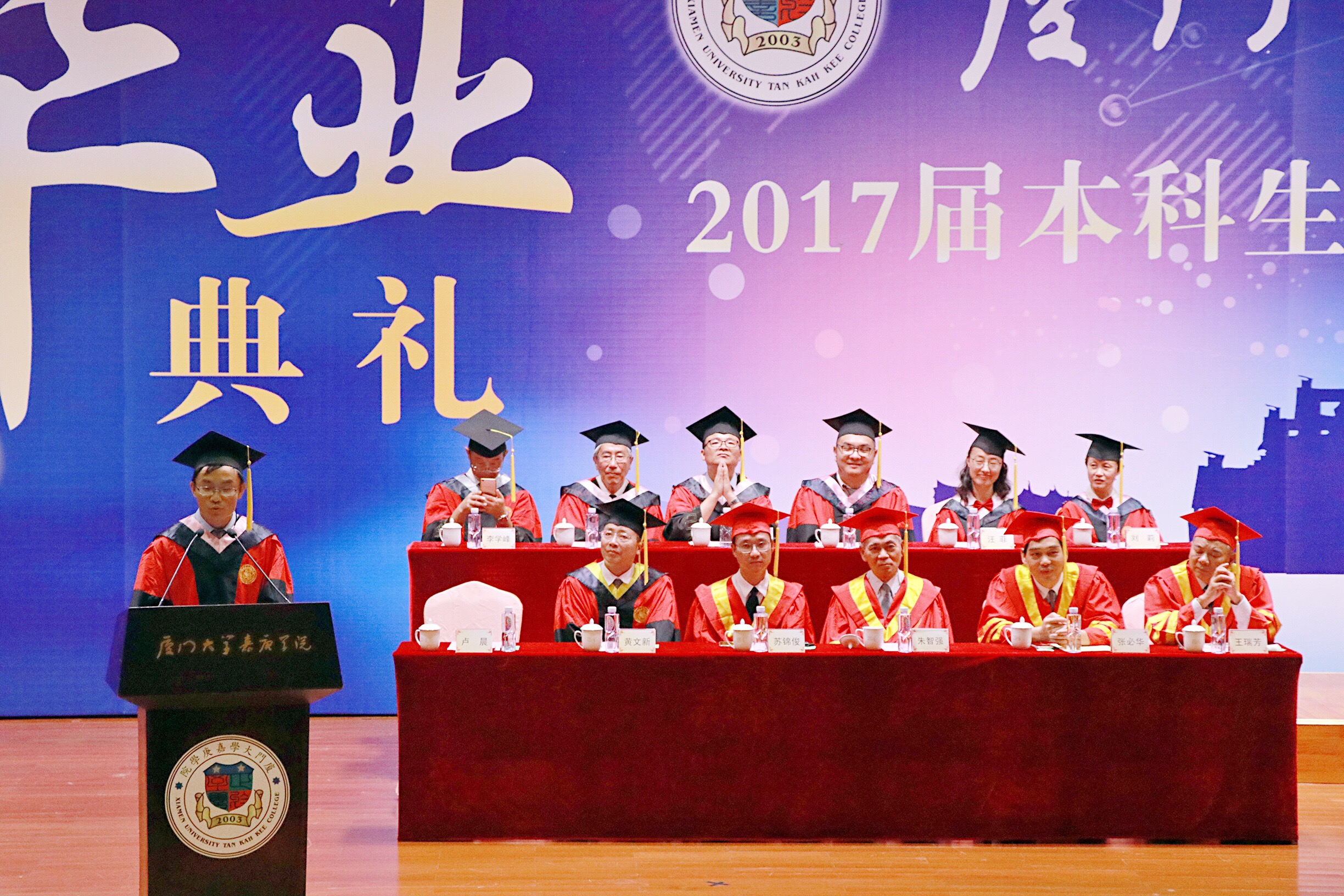 我是来自国际商务学院的专任教师卢晨。在毕业的季节里,恭喜各位同学们圆满完成学业,成为厦门大学嘉庚学院2017届毕业生。你们是曾经的国际经贸系送走的第11届毕业生,也是现在的国际商务学院送走的第1届毕业生。请允许我作为教师代表向即将开启人生新篇章的同学们致以最诚挚的祝贺和最衷心的祝福!