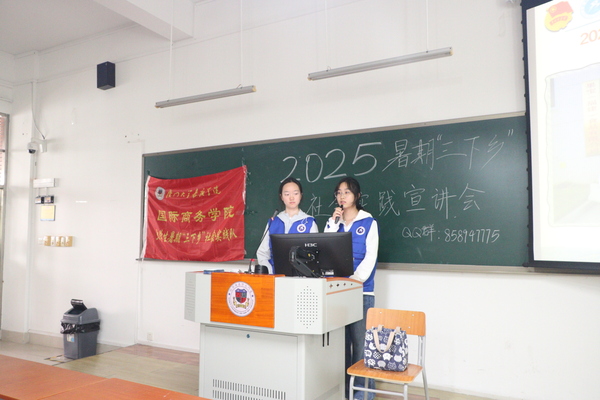 为引导国际商务学院学子在社会实践中锤炼自我,增强社会责任感与使命感,国际商务学院团总支分别于4月9日、4月16日和4月23日举办了2025年暑期“三下乡”社会实践活动宣讲会。其中,4月9日在主4#212和公一#311教室面向2023级学生开展,4月16日在主2#301教室为2024级国际商务与营销专业学生开展,4月23日则在主2#107面对2024级国际经济与贸易学生开展。