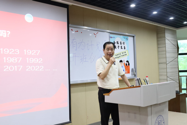 发言结束后,邵长虎开展第一讲课程的讲述——“习近平的七年知青岁月对青年大学生的启迪意义”。通过邵长虎的分享,同学们看到了一位领袖青年时代的成长足迹,一部关于青春选择、苦难磨砺与人民情怀的生动教材。习近平总书记在梁家河插队的七年知青岁月,这段“苦其心志、劳其筋骨”的经历诠释了青年习近平的青春答案:在逆境中坚定信仰,在泥土里读懂中国,在奉献中实现价值。最后,邵长虎表达了对团学组织干部们的殷切期望,希望同学们积极向党组织靠拢,透过对习近平总书记奋斗历程的了解,不断强化自身能力素养,勇做时代浪潮儿,放飞青春梦想。