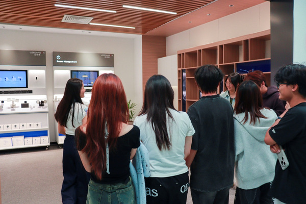 在产品展示区,工作人员向师生重点展示了立达信多款荣获行业大奖的明星产品。这些产品集设计感、实用性与环保性于一身,让同学们对物联网产品的市场价值以及企业的创新精神有了直观的认识。