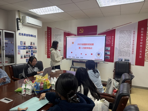 2026年3月11日下午14点,2025级国际班新班委第一次培训会议在经管B#403顺利召开。此次会议由2024级国际班总班长丁佳慧主持,国际班朱苓侨老师、宣传中心副部长周澈参与培训指导。